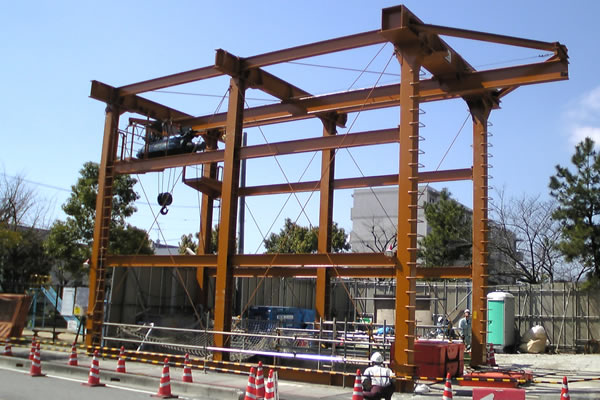 荷の上げ下げとレール(Iビーム)に沿った移動(横行)のみを行うクレーン